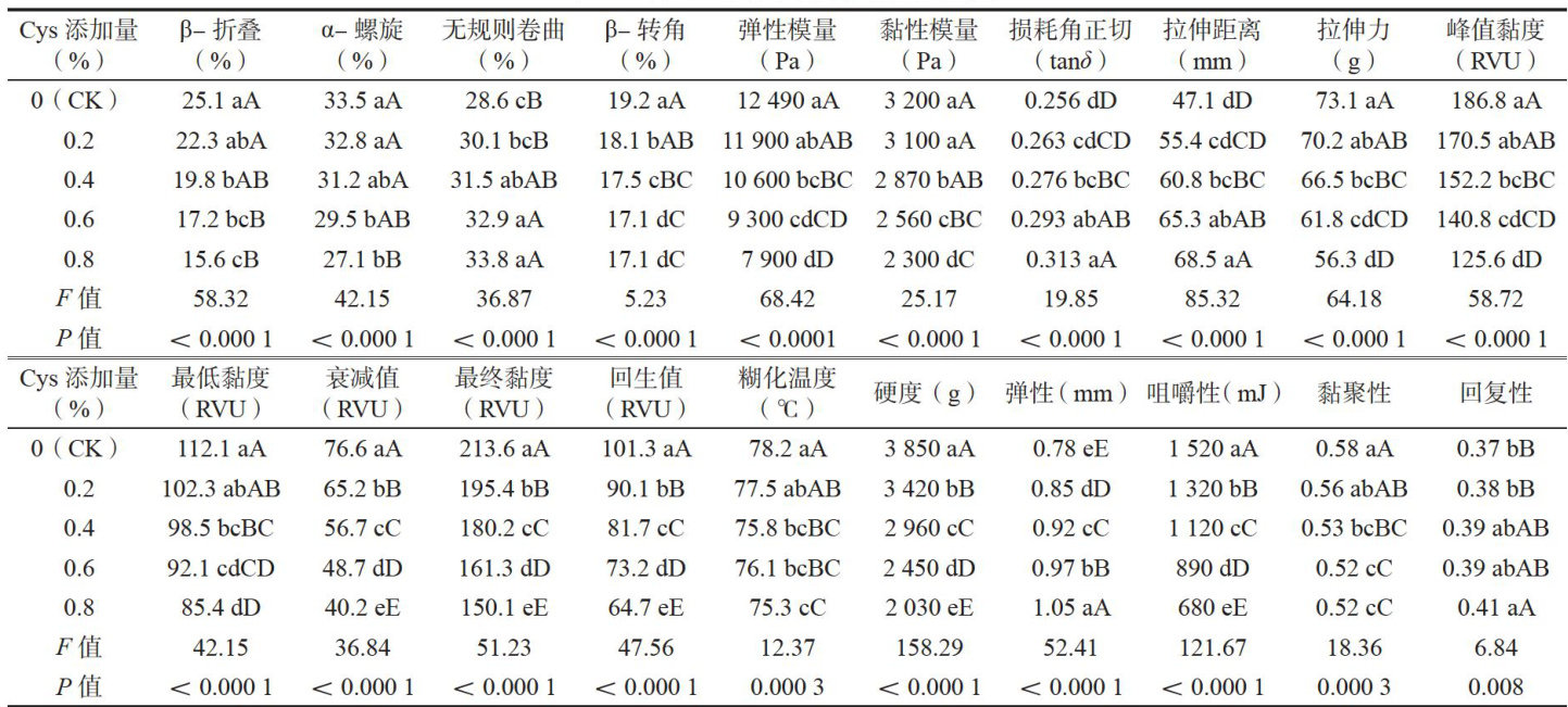 半胱氨酸对牛肉拉面面团结构、性能及口感的影响