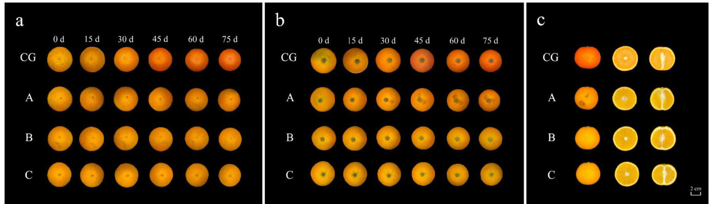 Abstract:Thisstudyaims toexplortheefectsofdiferentlow-temperaturepreservationtechiquesonthequalityofpostharvest Bingtang oranges.Bingtang oranges from Mayang Wereusedas the experimental materials and subjected toconventional lowtemperaturepreation(CG),owtmperaturepreseatioobieditig-vagelectricfeldtratmet(A)frgt preservation(B),andfreeingpoitpresevationcombinedwithigh-voltageelectricfeldtreatment(C).Thefruitcolo,ightlos rate,decayate,ardessfavoandutrientcntetweremeasudwitin5daysofsorage.Thesultsaresummaedfollos. (1)CG treatmentwasonlysuitableforshort-termstorage.Thefruits treatedwithCGfor75daysshowedadarkenedandredishfruit color, a cumulative weight loss rate of 17.26% ,a cumulative decay rate of 14% ,and a VC loss rate of 39.1% ,which indicated poor storagequality.(2)AandCtreatmentsbasicallymaintaedteualityandfavoroftefruitsuringthestorageperiod,hileboth treatmentsshowed fruitskin browningatthelate stageof storage,whichresulted inadeclineincommercial value.WhenAand C treatmentsarsedforlongtestorage,itisecssytooptizeteparametersadselectanappopateelectricfeditesity (3)The Btreatmentservedastheoptimalsolutionforlong-temstorage.It maintainedthefruitappearanceandcolor,ihibitedthe weightlossanddecayeptfruithrdessandfavor,andrducedutrientlossuringthestorageperiod,demonstratigtebest comprehensive performance.This treatmentcandelaythefruit damageand prolong theshelf ife,therebymaintainingthecommercial value of fruits to the maximum extent.
