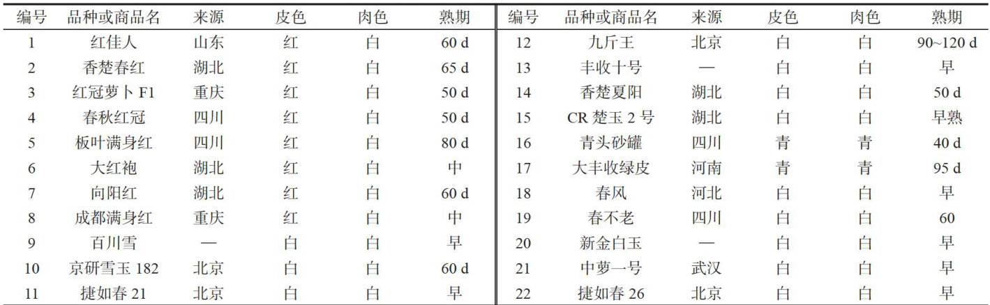 春萝卜耐抽性评价与品质性状分析
