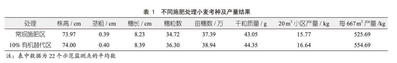 氮肥10%有机替代小麦有机无机配施技术模式示范推广 效果