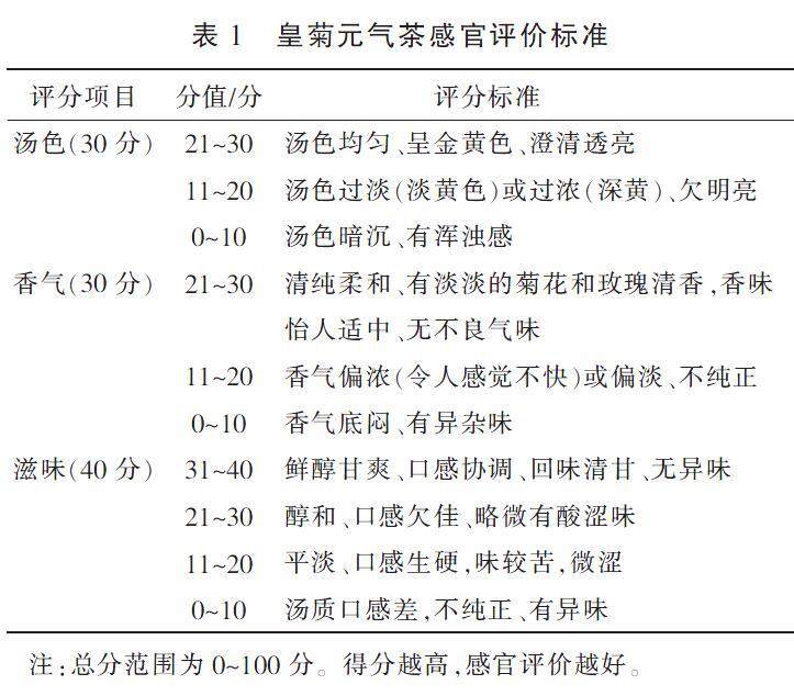 〔摘要〕 目的 以金丝皇菊为主要原料,辅以玫瑰花、枸杞子、红枣、桂圆,研制皇菊元气茶,确定最佳复配比例和最佳冲泡工艺,并评价其抗氧化和降血糖活性。方法 以茶汤的感官评分为评价指标,确定最佳的复配比例;通过单因素和正交试验确定茶水比、冲泡温度、冲泡时间对茶品质的影响,以此获得皇菊元气茶的最佳冲泡工艺。(剩余12402字)