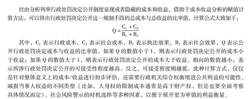行政处罚决定相对公开原则引入成本收益分析的价值及其限度