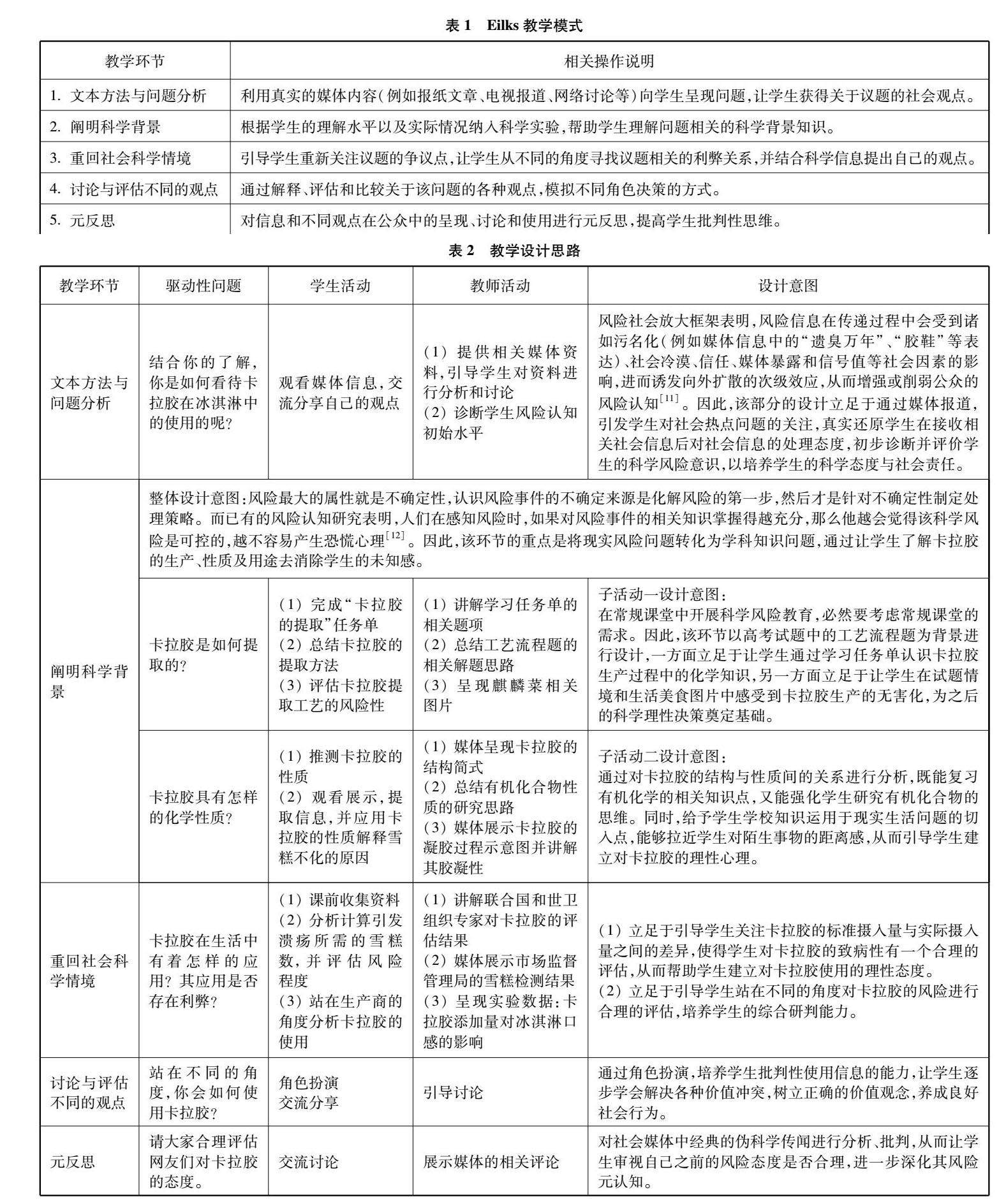 摘要: 结合Eilks教学模式,以“雪糕刺客中的食品添加剂”为载体,按照“文本方法与问题分析→阐明科学背景→重回社会科学情境→讨论与评估不同的观点→元反思”的基本程序进行科学风险议题教学设计。研究发现:该教学模式既能够让学生获取知识,明白知识是应对科学风险的关键要素;又能让学生用正确价值观思考问题,形成科学理性的科学风险态度。(剩余8253字)