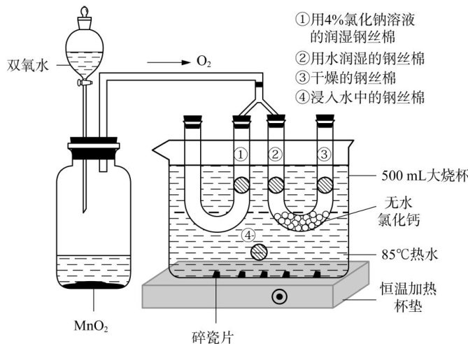 《义务教育化学课程标准(2022年版)》的“物质的性质与应用”主题中的“学习活动建议”提出开展“探究铁钉生锈的条件"实验活动[1]。探究钢铁生锈的条件是初中化学中非常重要的利用控制变量进行探究的实验活动,但许多版本教材中的实验设计耗时太长,空间跨度大,一般需要提前一周做好准备,并不断观察拍摄,最终以图片的形式呈现给学生,导致学生无法直观看到实验现象和变化过程,缺失了亲身体验感。(剩余2832字)
