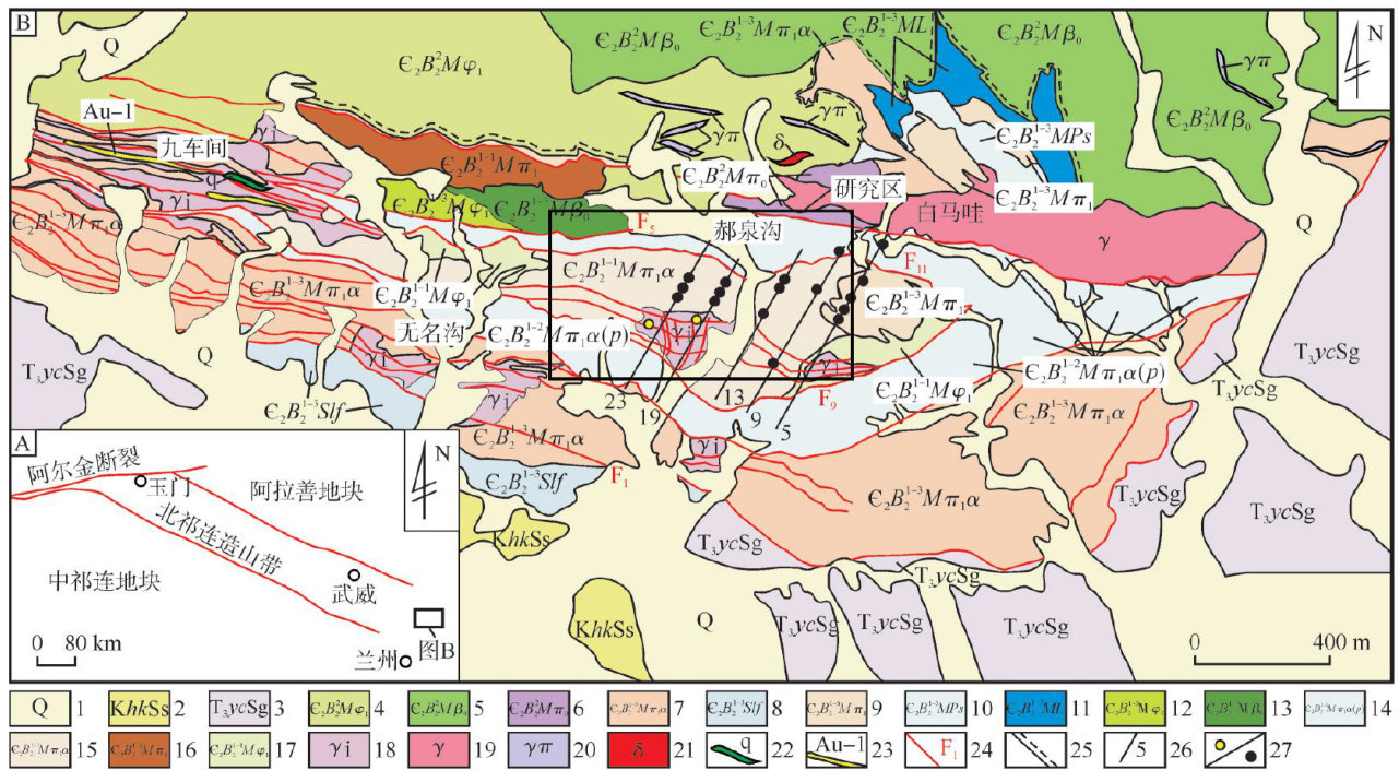 郝泉沟金矿床位于甘肃省白银市 330∘. 方向约 10km 处,成矿区带划分归属于北祁连成矿带、白银厂一庄浪铜铅锌铁铬金银锰铁成矿亚带[1],该成矿亚带因产出以白银厂铜多金属矿田为代表的、与海相火山岩有关的块状硫化物矿床而备受关注[2-3]。(剩余15281字)