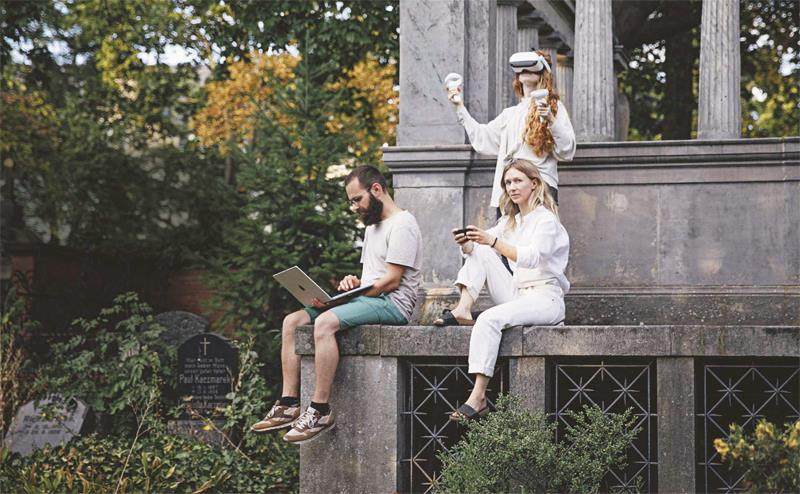 莉莉·伯格(右前)希望通过她的初创公司倡导一种新的纪念方式——在虚似空间与逝者再次“相遇”。