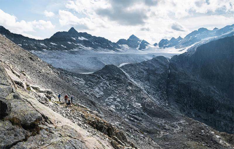 远处,气候变暖在瑞士乌里州和格劳宾登州交界的布鲁尼冰川留下的残迹若隐若现。近处,考古学家正在碎石堆中搜寻石器时代的踪迹。8000年前,人类曾在此地从岩层中开采水晶,并将其加工成箭头和工具。