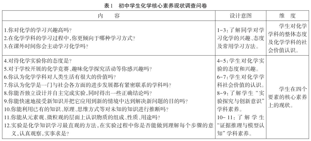摘要:随着社会的高速发展,在新的一轮课改中,对化学教学提出了更全面、系统的素质教育要求。作者通过基于化学核心素养问卷调查的数据反馈,分析当下初中学生在化学核心素养上的培养现状及存在问题,并针对这些问题提出了相应培养学生核心素养的策略。