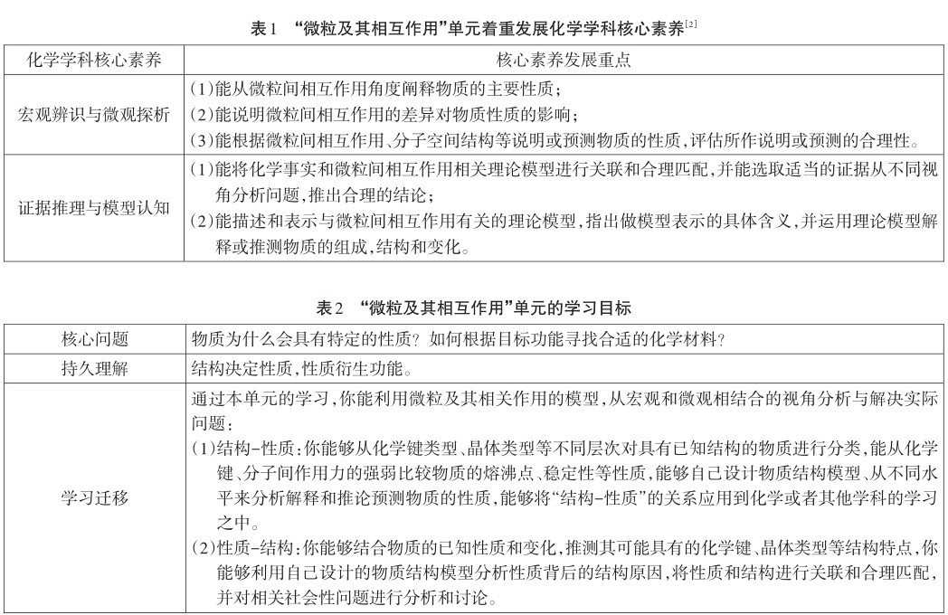 关键词:核心素养;单元学习;物质结构;微粒及其相互作用