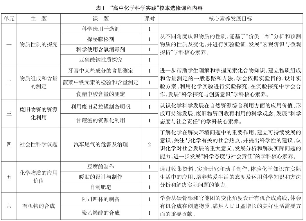 关键词:核心素养;校本课程;课程开发与实施;化学科学实践