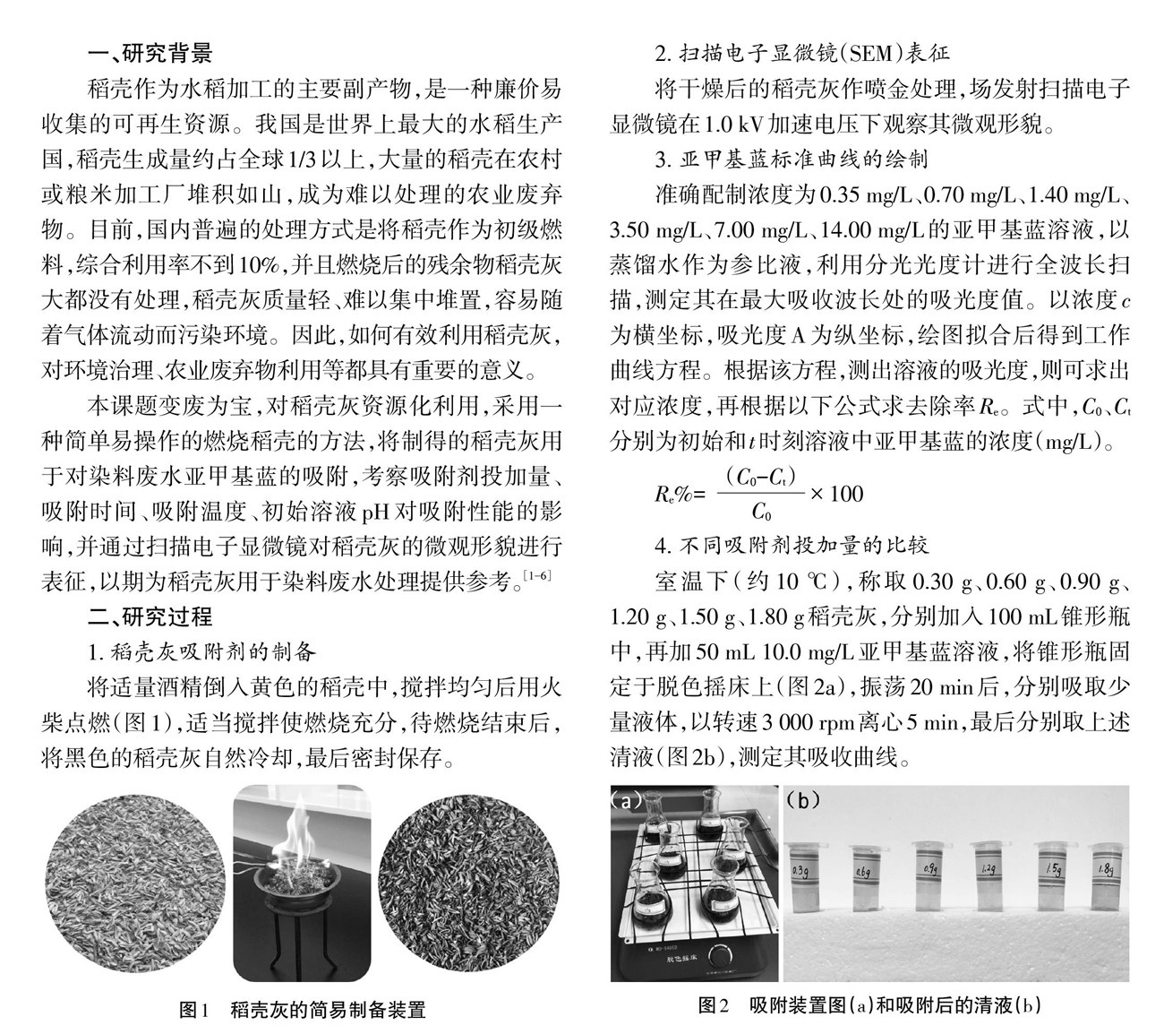 稻壳灰对亚甲基蓝的吸附性能研究