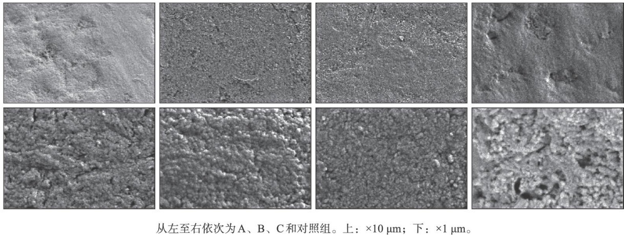 [Abstract]ObjectiveThrough the investigationofthe microhardnessand microstructure of permanent tooth enamel at various eruption stages duringchildhood,this research ofers references fortheearly preventionofchildhood dental caries.MethodsForty-five premolars extracted duetoorthodonticreasons werecollctedand screened.These premolars were divided into three experimental groups according to the time since eruption: Group A(erupted forO-1year), GroupB(eruptedfor1-3years),andGroupC(eruptedfor3-5years).Additionally,thethirdmolarsthat wereextracted due to impactionandhadnot erupted were selectedasthecontrol group,with15teth ineach group.Samples were prepared,and thesurface microhardness,microstructure,and elemental compositionof theenamel were measured using Vickers microhardness tester,scanning electron microscope,and electron probe,respectively.ResultsCompared with thatinthecontrolgroup,themicrohardnessofenamelingroupsA,B,andCincreasedwithprolongederuptiontime,the surface porosity structure decreased considerably,the contents ofNaand Mg on the surface decreased,and that ofF increased (P<0.05) .ConclusionThe microhardness and microstructure of enamel in permanent teeth at different stages vary.Permanent teth areatasubstantially higherriskofcarieswithinoneyearafter eruption,andearly prevention should be emphasized.