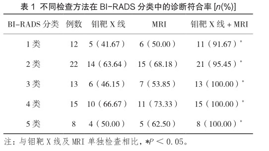 钼靶X线联合磁共振在早期乳腺癌诊断中的价值