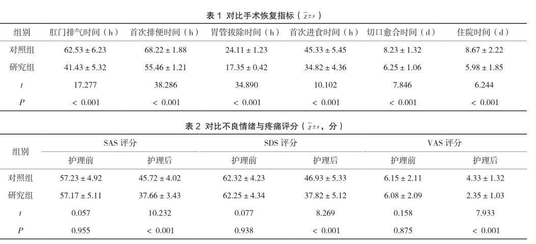 【摘要】目的:探讨在胃肠道手术患者给予综合性护理对预防术后粘连性肠梗阻的效果以及患者的预后情况。方法:研究纳入病例的起始时间在2021年1月,截止时间在2021年12月,共有90例纳入本次研究,均为这个时间段在我院接受胃肠道手术者,将患者随机编号均分两组,对照组在护理中施以常规护理,研究组在护理中施以综合性护理,重点观察患者临床指标恢复情况、不良情绪与疼痛缓解情况以及并发症发生情况。(剩余5361字)