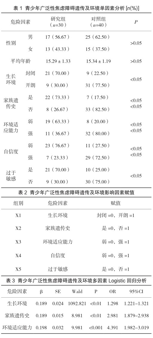 青少年广泛性焦虑障碍与遗传及环境因素相关性分析