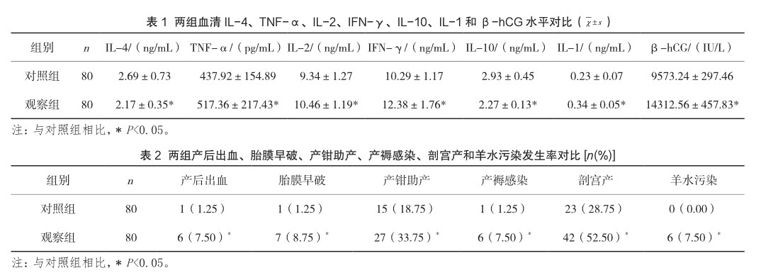 B族链球菌感染孕妇Th1/Th2细胞因子、血清炎症因子、β-hCG的变化及其对妊娠结局的影响