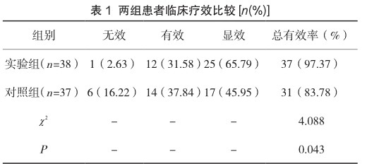 【摘要】目的:分析加味四物汤治疗痛经的疗效,评价痛经症状积分。方法:就本院妇科诊疗且符合研究标准的痛经患者中选取75例为探究对象,患者的入院时间开始于2020年6月,截止在2021年6月,分组依据是利用方便抽样法,分成对照组(37例)和实验组(38例)。在治疗过程中予以对照组布洛芬缓释胶囊治疗,予以实验组加味四物汤改善治疗,将两组的疗效差异、痛经症状积分以及发生的不良反应情况作为观察指标进行分析。(剩余6175字)