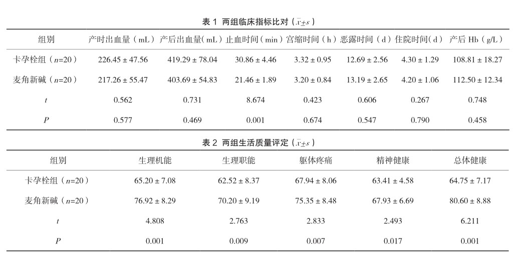 卡孕栓与麦角新碱分别联合缩宫素预防产后出血的效果研究