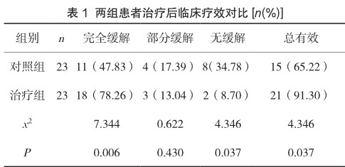 【摘要】目的:托法替布联合甲氨蝶呤治疗难治性类风湿关节炎的临床疗效对照研究。方法:选取2022年1月—2022年12月到我院诊断为难治性类风湿关节炎的46例患者为对象以随机数字表法进行分组,对照组以及治疗组分别23例,对照组接受甲氨蝶呤进行治疗,治疗组在对照组基础上加用托法替布进行治疗。观察两组患者临床治疗效果、症状体征数据,治疗后,对比两组CRP、ESR、RF、anti-CCP水平和血清IL-6水平。(剩余5401字)