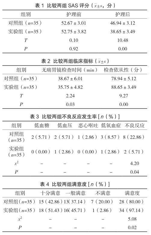 【摘要】目的:在无痛胃镜检查患儿中,探究童趣化理念导向的护理策略的应用价值及在检查依从性及负面情绪方面的影响。方法:将常州市儿童医院2020年8月—2022年8月收治的70例患儿随机均分为对照组和实验组,两组患儿均开展无痛胃镜检查,对照组为患儿提供常规护理,实验组为患儿提供童趣化理念导向的护理策略,对比两组患儿的负面情绪、临床指标、不良反应发生率及满意度。(剩余5706字)