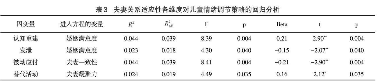 夫妻关系适应性与学龄前儿童情绪调节策略的关系