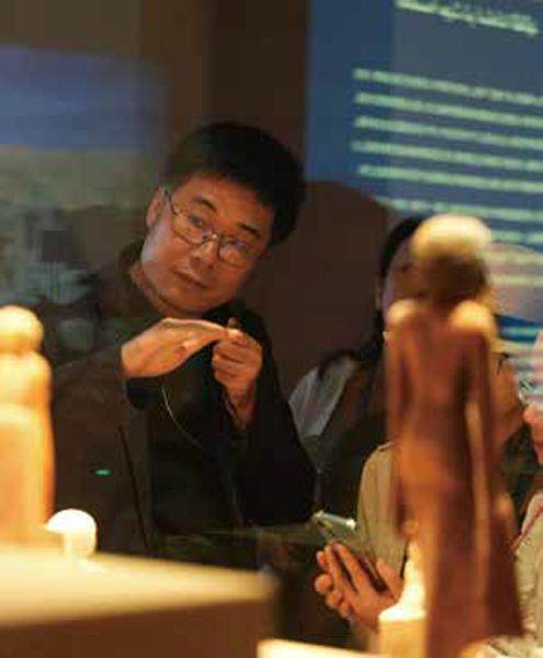 “金字塔之巅”开展后,各路媒体蜂拥而至。策展人薛江在上海衡山路上的咖啡厅里接受采访,回忆他从上海外国语大学到埃及“永恒沉睡之地”萨卡拉近万公里的旅行,仿佛瞬间又切换成了萨卡拉考古工地现场的“薛工头”。