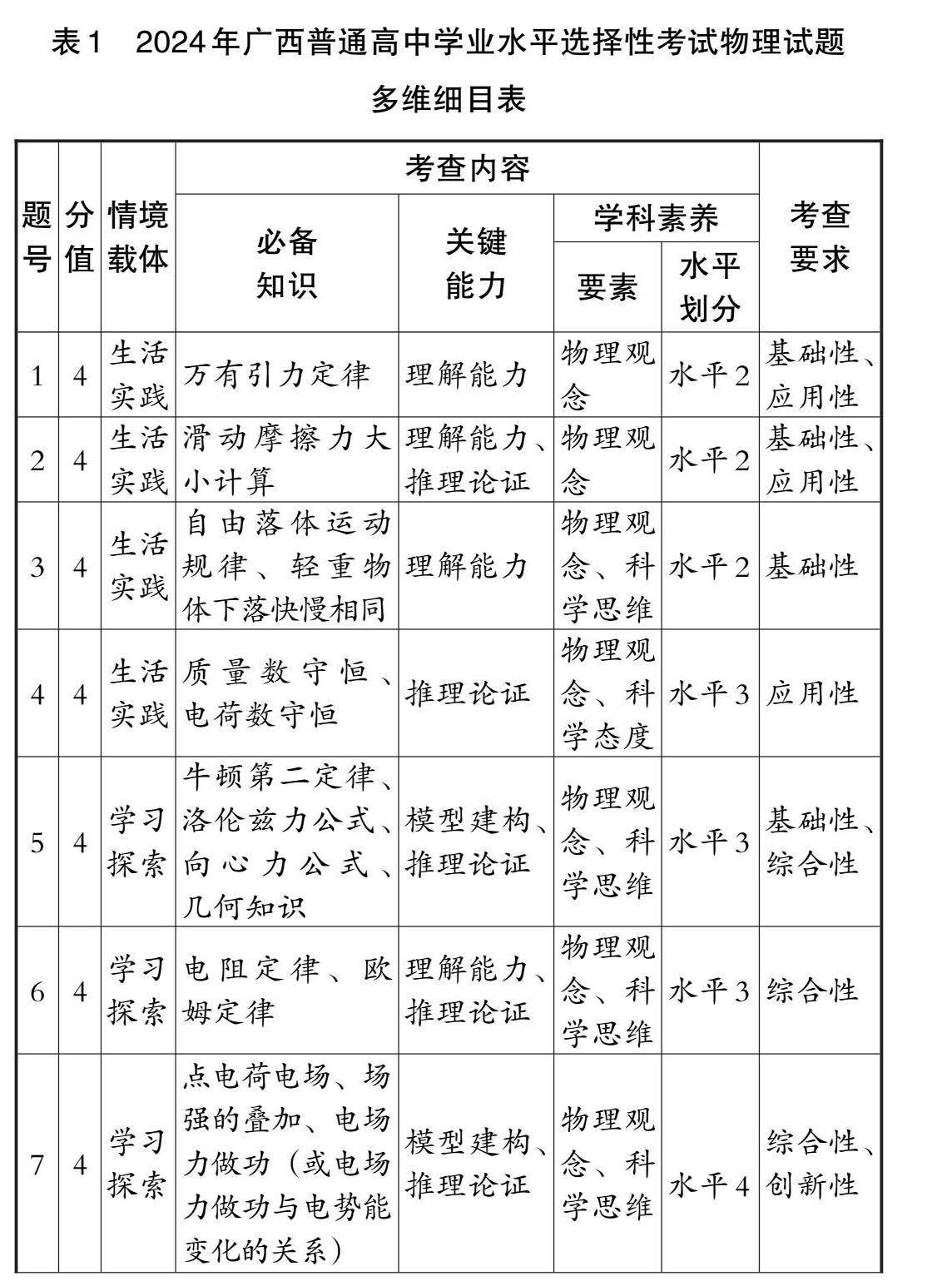2024年广西普通高中学业水平选择性考试物理试题解构