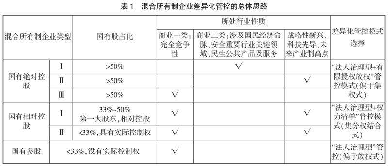 混合所有制企业差异化管控模式研究