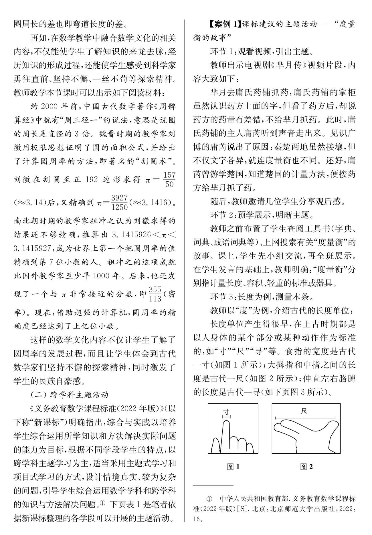 摘要:《义务教育课程方案(2022年版'明确规定,各门课程用不少于10%的课时设计跨学科学习。跨学科学习是聚焦一个有意义的问题,将问题转化为探究主题,运用两种或两种以上学科的知识、方法和观念,对主题持续探究的学习。开展跨学科学习能够助力人才培养、深度学习和课程变革等。小学数学跨学科学习应当因材施教、循序渐进,可以开展传统教学的跨学科融合、跨学科主题活动以及跨学科项目学习。(剩余7413字)