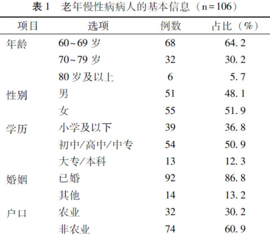 老年慢性病人自我照护社会支持网络的现状调查