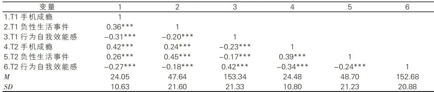 初中生负性生活事件纵向预测手机成瘾:行为自我效能感的中介作用