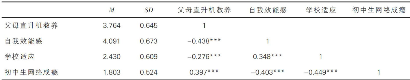 父母直升机教养与初中生网络成瘾的关系:自我效能感与学校适应的链式中介作用