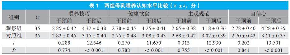 方法 选取2024年1月至2025年1月医院收治的70例初产妇为研究对象,随机分为对照组和观察组各35例。对照组予以常规产科护理,观察组在对照组基础上给予基于健康行为改变整合理论的全方位护理,比较两组母乳喂养认知水平、母乳喂养自我效能感[母乳喂养自我效能量表(BSES)]、纯母乳喂养率及母乳喂养相关不良事件发生情况。(剩余3901字)