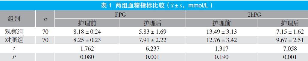 摘要:目的 探讨循证护理在老年糖尿病患者中的应用效果分析。方法 选取2023年1月至2024年1月医院收治的140例老年糖尿病患者为研究对象,随机分为对照组和观察组各70例。对照组实施基础护理,观察组实施循证护理,比较两组血糖指标[空腹血糖(FPG)、餐后2 h血糖(2 h PG)]、心理状态[焦虑自评量表(SAS)、抑郁自评量表(SDS)评分]及生活质量[健康调查简表(SF-36)评分]。(剩余4123字)