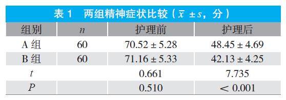 摘要:目的 探讨共情反馈式心理护理模式对精神分裂症患者服药依从性及康复效果的影响。方法 选取2024年1月至2024年12月医院收治的120例精神分裂症患者为研究对象,按照随机数表法分为A组(60例,常规护理)与B组(60例,在A组基础上实施共情反馈式心理护理),比较两组精神症状[简明精神病评定量表(BPRS)评分]、服药依从性[中文版8条目Morisky服药依从性量表(MMAS-8)评分]及社会功能[住院精神病患者社会功能评定量表(SSPI)评分]。(剩余4248字)