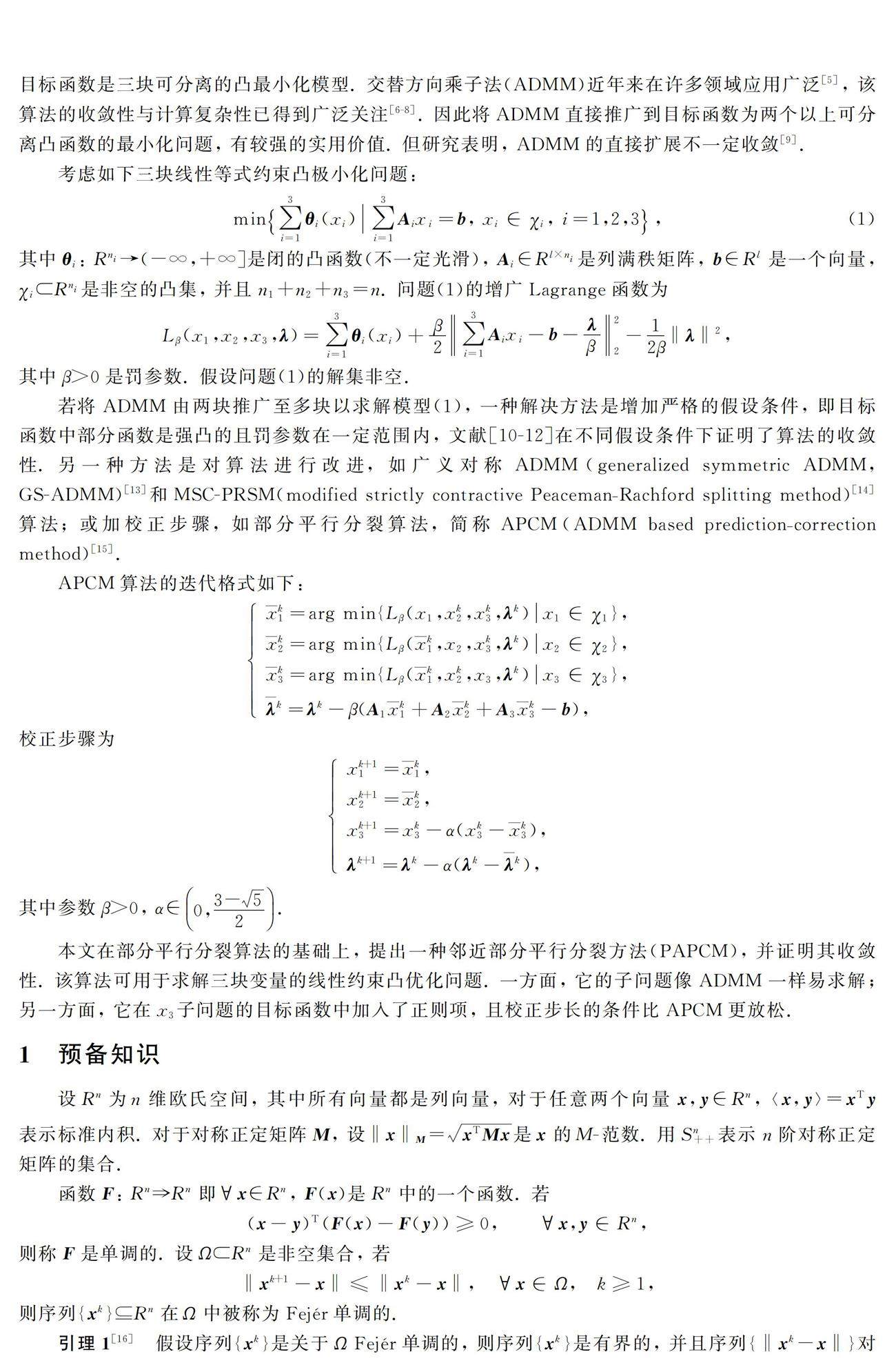 摘要: 考虑线性约束三块变量的凸优化问题,在部分平行分裂算法中选取不同步长参数的基础上,提出一种邻近部分平行分裂算法,并证明该算法的收敛性. 该算法通过在部分平行分裂算法中选取不同步长参数的基础上,在一个子问题的目标函数中加入邻近项,建立新的参数条件. 与部分平行分裂算法相比,该算法极大放松了参数条(剩余5058字)