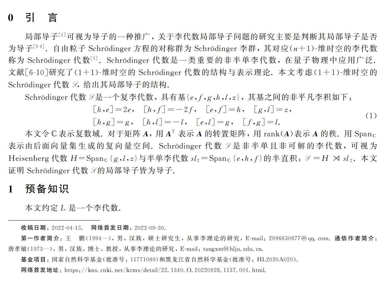 关键词: SchrÖdinger代数; 导子; 局部导子