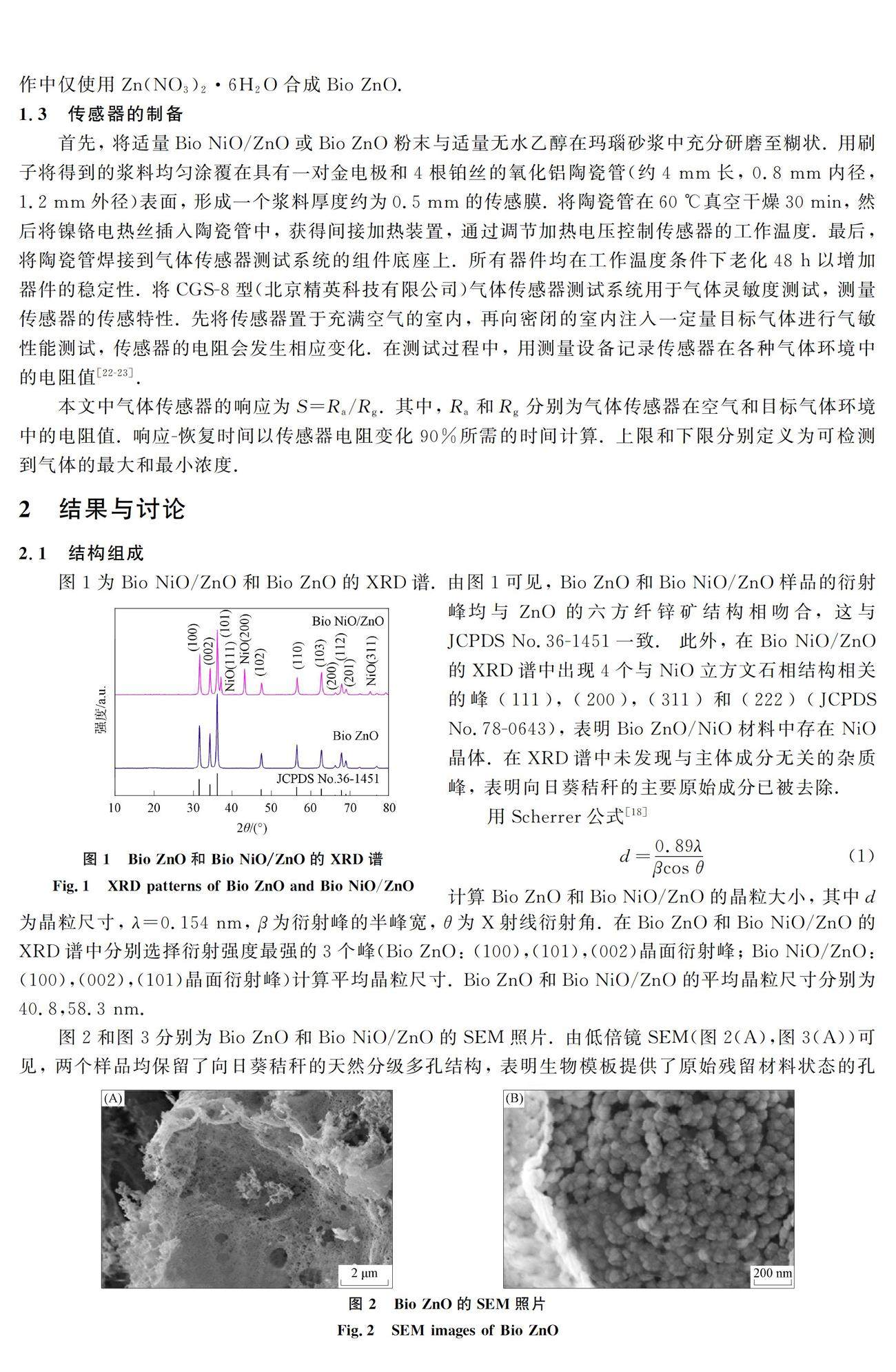 分级多孔结构NiO/ZnO复合材料制备及其甲醛气敏性能