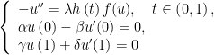 正解的存在性,其中 α,β,γ,δ⩾0 是常数, λ>0 是一个参数, h∈L1((0,1),[0,+∞)) ,f∈C((0,+∞),R) 且在零点处奇异,在无穷远处满足超线性增长的条件,基于Krasnoselskii不动点定理证明存在一个常数 λ0>0 ,使得当 λ∈(0,λ0) 时(剩余6929字)