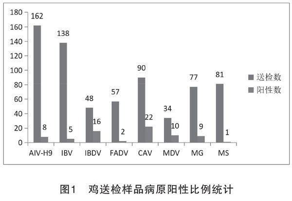 2022年4~6月共收到鸡病料样品1 350余份。检测结果显示,以免疫抑制性病原、呼吸道疾病病原和肝损伤性病原检出率相对较高。其中,在免疫抑制性病原中,以鸡传染性法氏囊病毒(IBDV)居多,其次是马立克氏病病毒(MDV)和鸡传染性贫血病毒(CAV)。IBDV疑似病例的阳性检出率是33.33%,MDV疑似病例的阳性检出率是29.41%,CAV疑似病例的阳性检出率是24.44%。(剩余1303字)