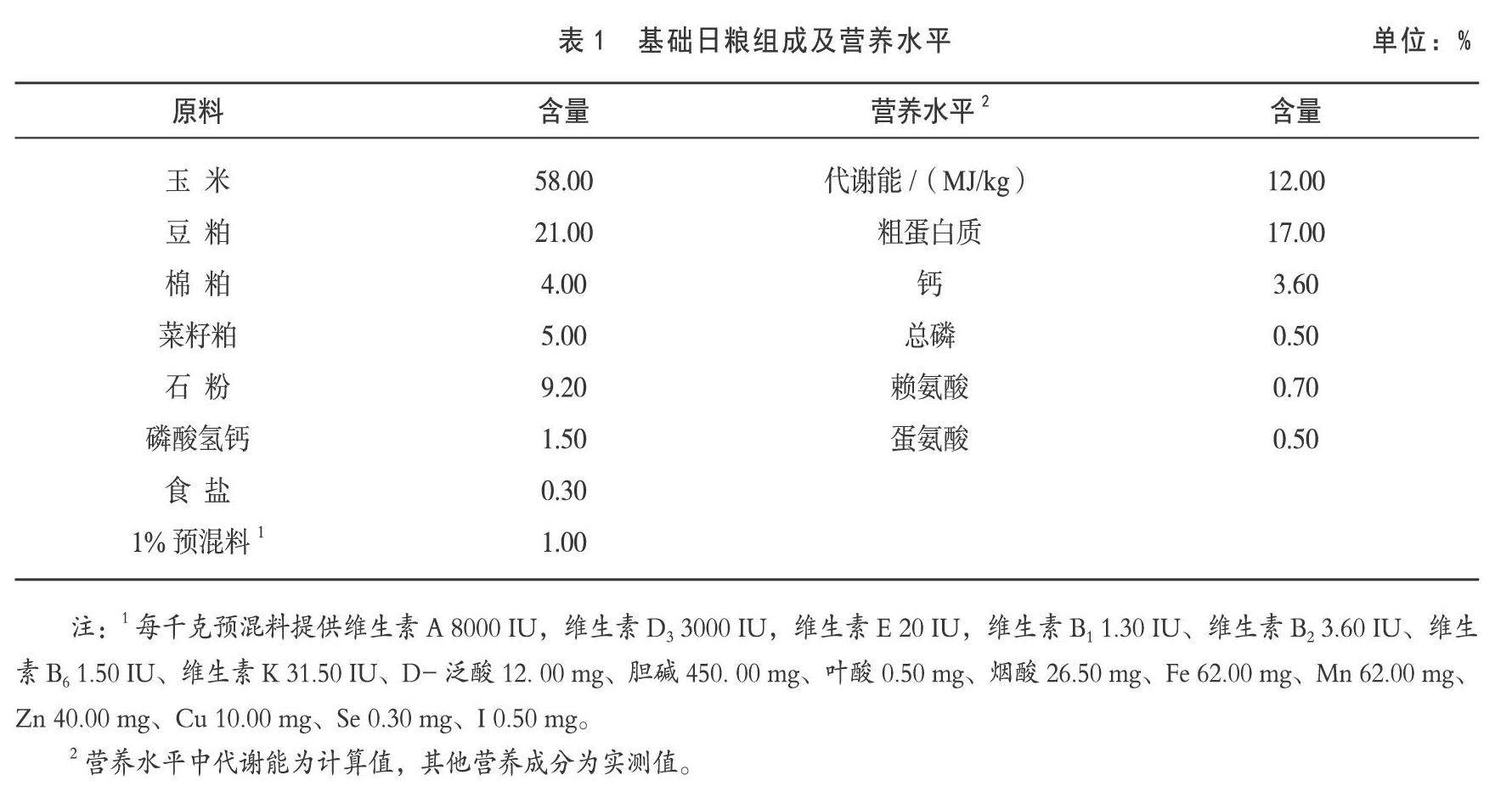 摘 要:为了探究枯草芽孢杆菌对蛋鸡生产性能以及血清生化指标的影响,试验选取40周龄体型及健康状况相近的400只海兰褐蛋鸡随机分成4个处理,每个处理20个重复,每个重复5只。4个处理为在基础日粮中分别添加0(对照组)、50、100、150g/吨枯草芽孢杆菌菌粉,菌粉的活菌数为1.0×1010 cfu/g。(剩余4665字)
