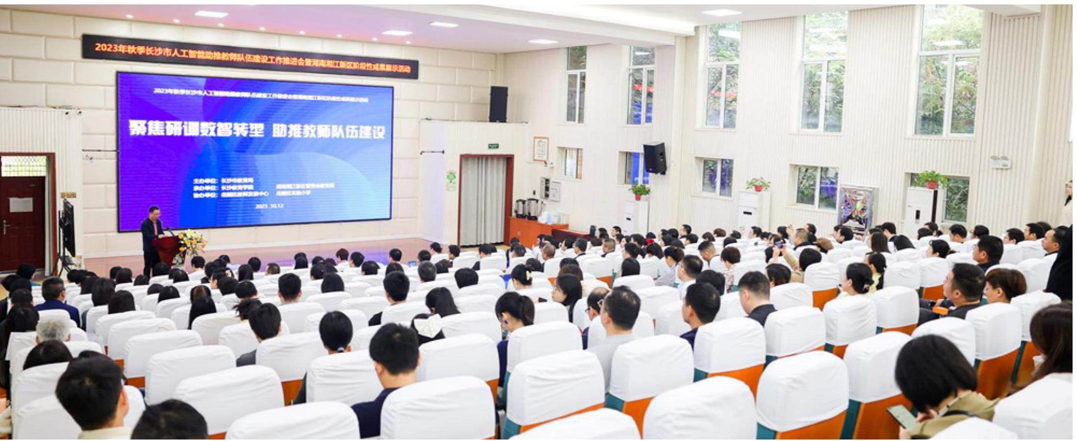 本报讯 日前,2023年长沙市人工智能助推教师队伍建设工作推进会暨湖南湘江新区阶段性成果展示活动顺利举行。湖南省教育厅教师工作与师范教育处副处长高洁,长沙市教育局副局长邓芸、教师工作处处长陈利群,长沙教育学院院长孙智明、副院长许月良,湖南湘江新区教育局党组成员伍秋阳等出席活动。