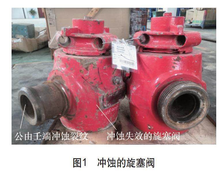 某高压压裂设备在服役时,当工作压力增至约10000psi(1psi=6.894757Pa)时,作业人员发现压力加载异常,停机检查发现其配件3in(1in=25.4mm)旋塞阀公接头处发生冲蚀,导致工作流体泄漏,冲蚀的旋塞阀如图1所示。(剩余2285字)