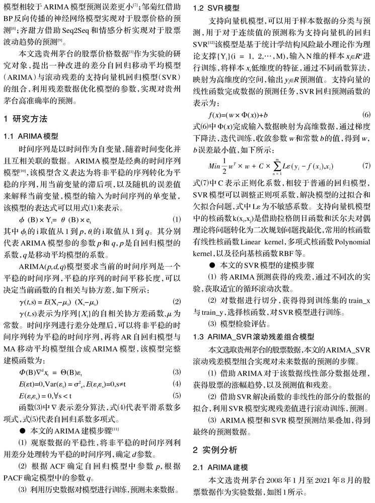 基于ARIMA与SVR滚动残差模型组合的股票预测