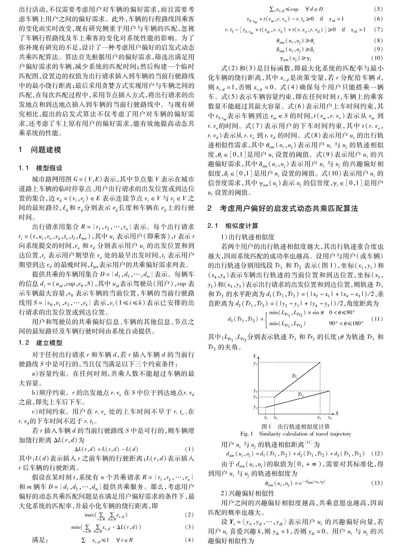 考虑用户偏好的启发式动态共乘匹配算法