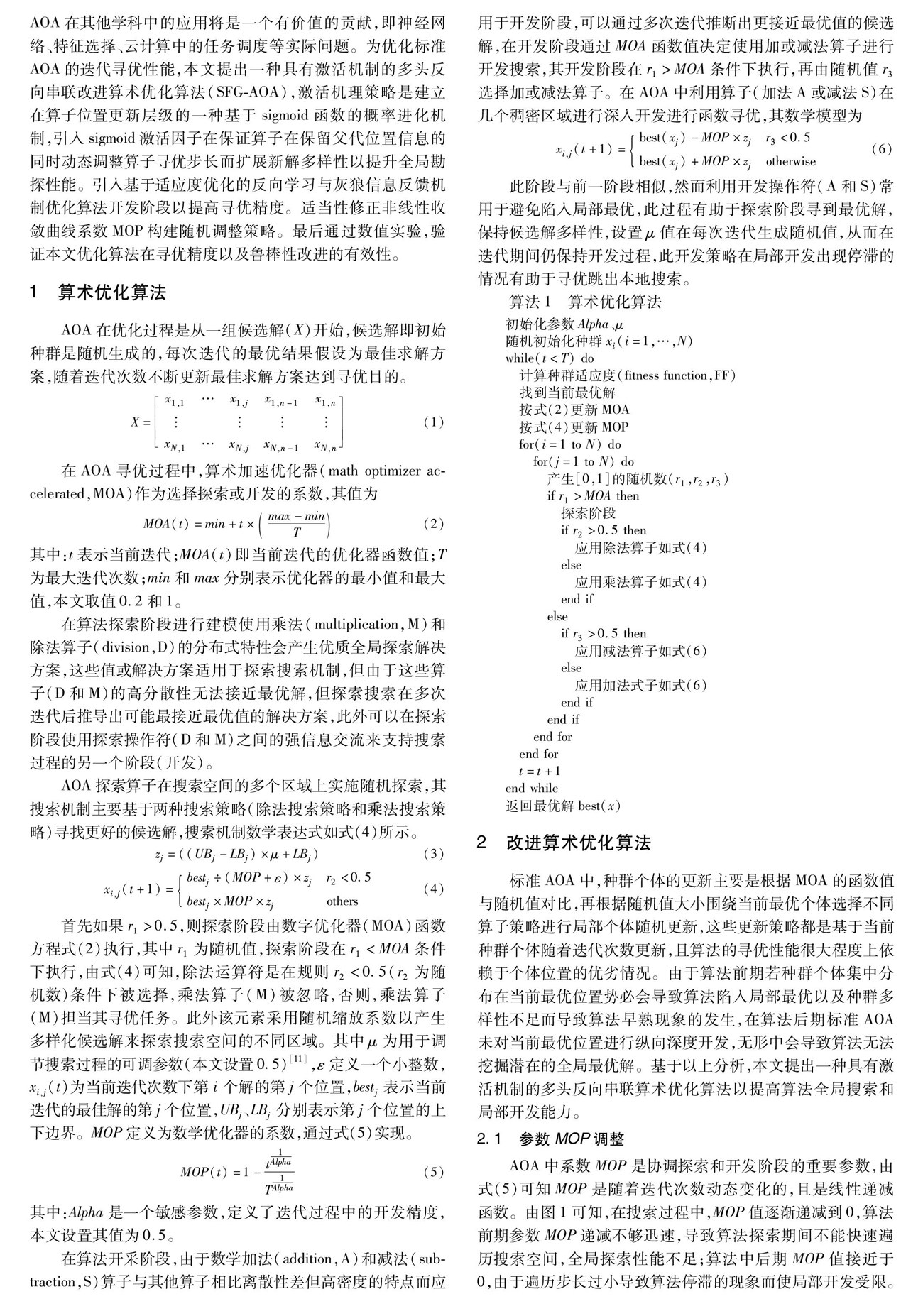 摘 要: 为提高算术优化算法(AOA)的全局勘探和局部开发性能,提出具有激活机理的多头反向串联算术优化算法(SFG-AOA)。激活机理策略是建立在算子位置更新层级的一种基于sigmoid函数的概率进化机制,通过引入激活因子在保证算子在继承父代位置信息的同时动态调整算子寻优步长而扩展新解多样性和全局勘探性能。(剩余10229字)