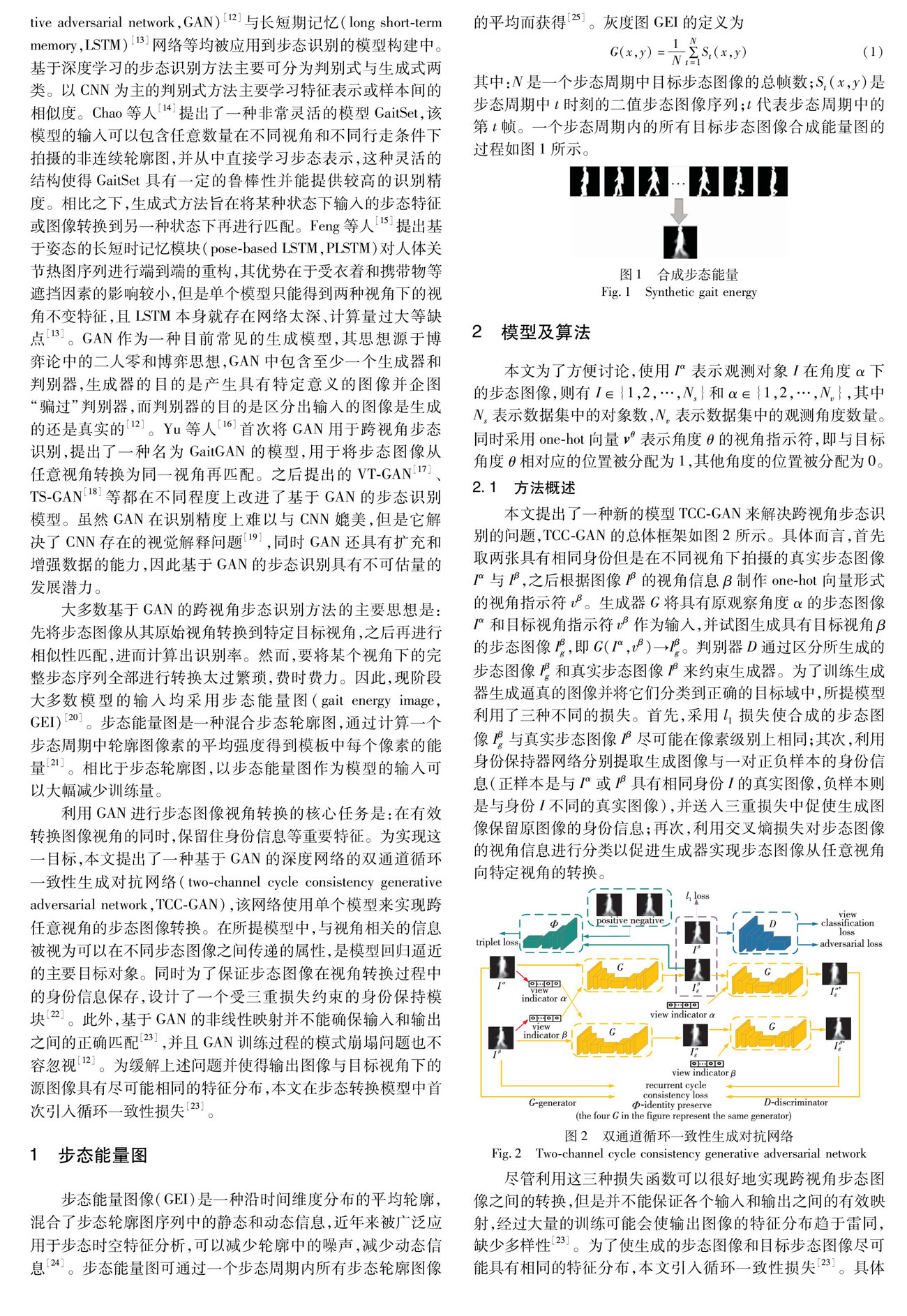 基于双通道循环一致性GAN的跨视角步态识别研究