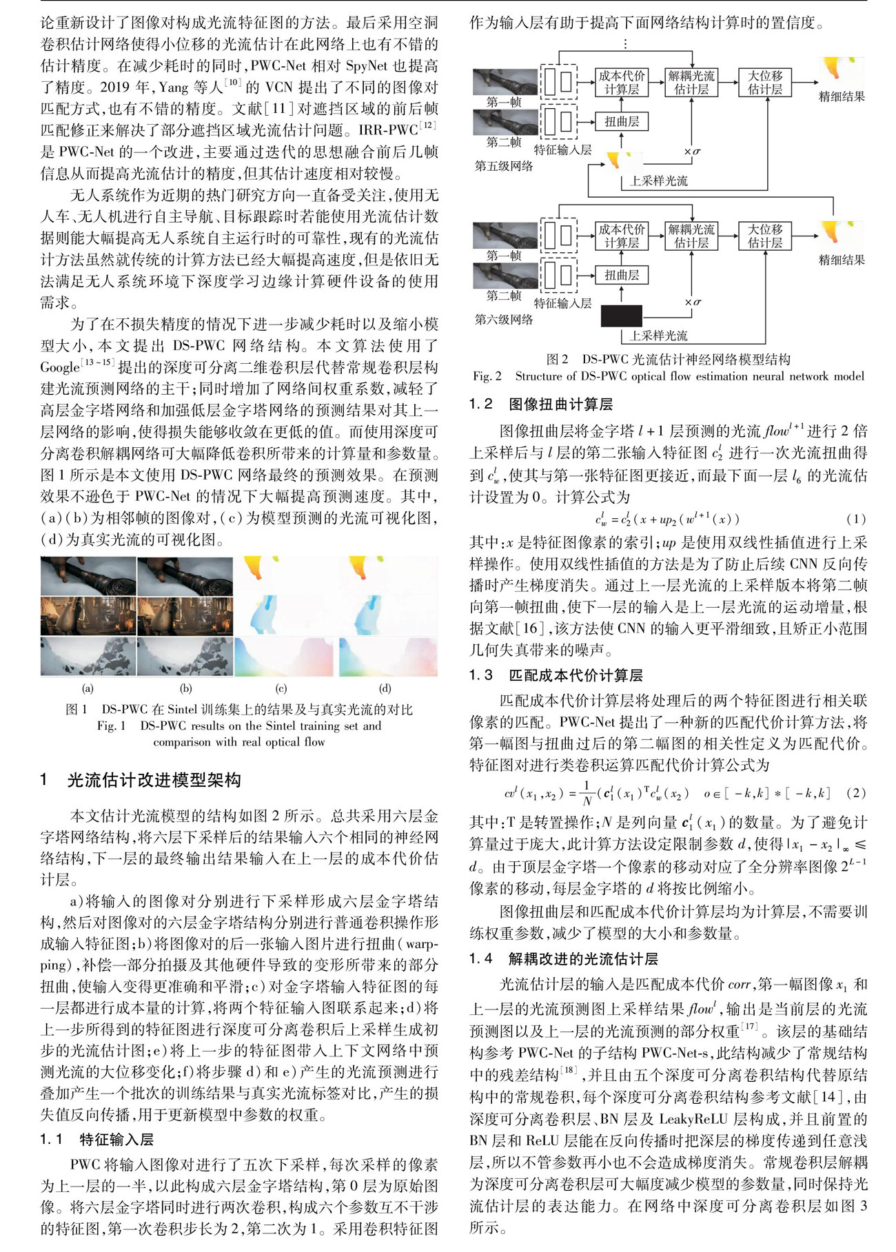 基于PWC-Net的多层权值和轻量化改进光流估计算法