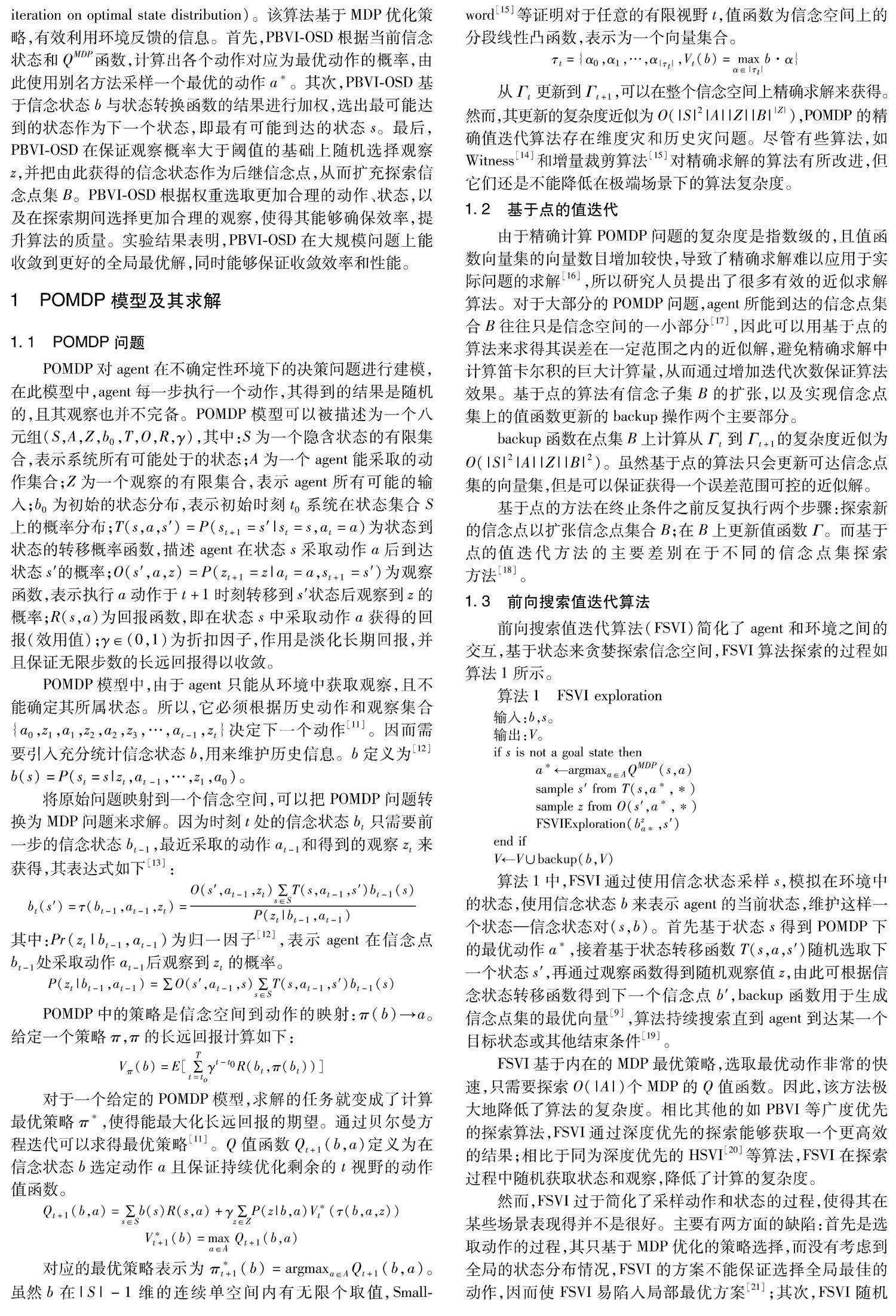 基于环境状态分布优化的POMDP 值迭代求解算法