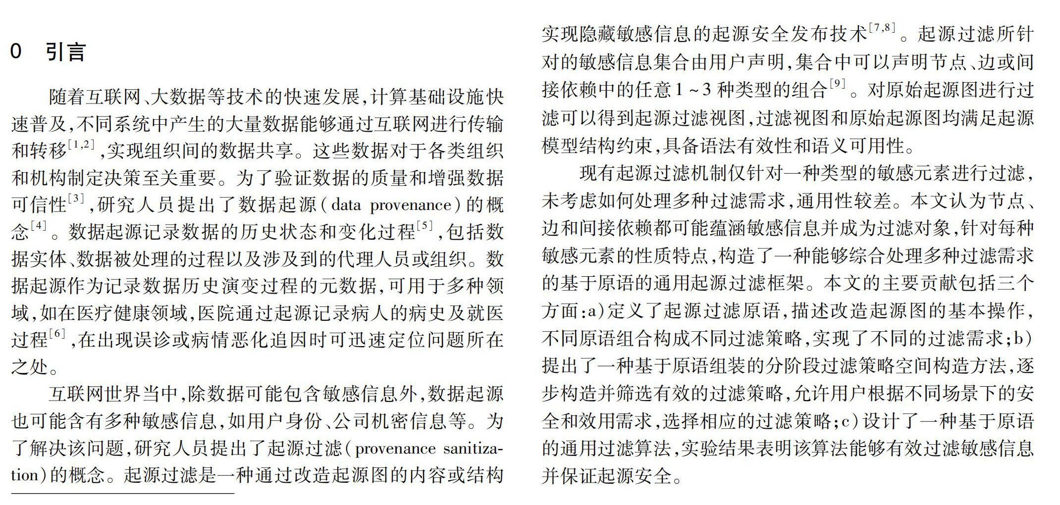 摘 要:现有起源过滤机制的通用性差,一个过滤机制仅能过滤某一特定类型的敏感元素,处理包含多种类型敏感元素的综合性起源过滤需求仍然非常困难,为此提出了一种基于原语的通用起源过滤框架。首先,介绍了起源过滤涉及的敏感元素类型以及过滤约束;其次,深入分析已有过滤机制改造起源图的基本操作和过程,形式地定义了一系列起源过滤原语,描述针对起源图的最小改造操作,将起源过滤过程划分为隐藏敏感元素、恢复有用依赖和验证过滤约束三个阶段,提出了一种基于原语组装的分阶段过滤策略空间构造方法;最后设计并实现了基于原语的通用过滤算法,并在公开数据集上验证了该算法的可行性。(剩余15442字)